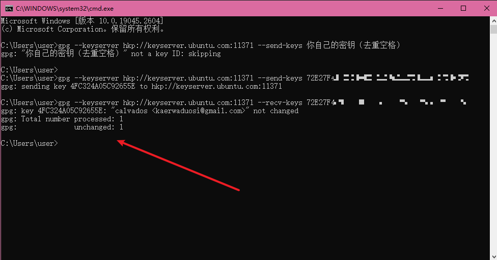 gpg --keyserver hkp://keyserver.ubuntu.com:11371 --send-keys 自己的密钥检查是否上传成功